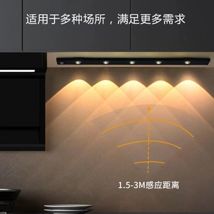 智能led人体感应灯超薄猫眼山丘灯条充电式自粘衣柜酒柜橱柜灯带