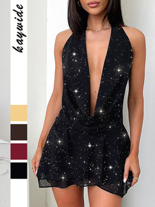 迪芸跨境欧美优雅女挂脖纯色短裙连衣裙女装2025秋冬亚马逊独立站