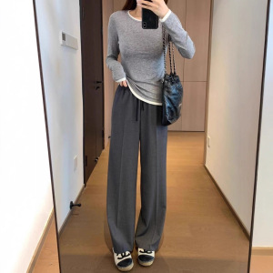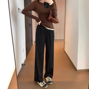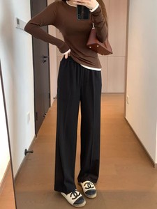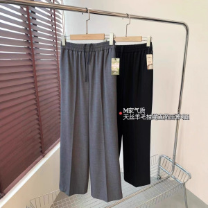 A299151 M家同款 气质挺阔天丝羊毛混纺直筒版抽绳松紧腰阔腿西裤