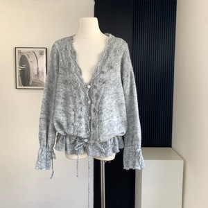 秋款2025新款温柔毛衣镂空钩花毛球V领宽松抽绳下摆针织毛衣