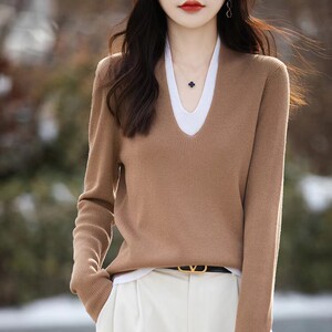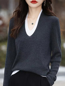 哥家商场同款女装2025秋季内搭显瘦假两件设计感撞色针织打底衫