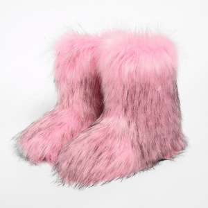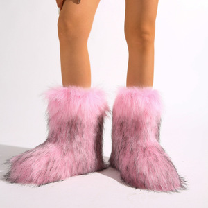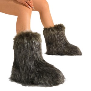 欧美毛绒雪地靴女士冬季防滑毛毛女鞋仿貉子毛保暖辣妹y2k大码