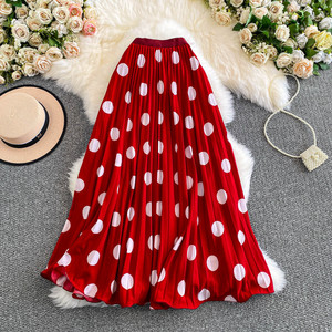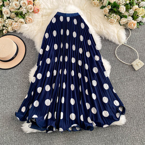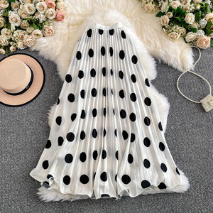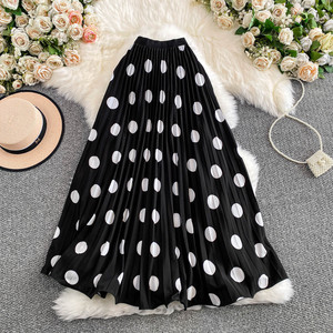 2025秋季新款波点半身裙女小个子百搭休闲宽松显瘦百褶大摆中长裙