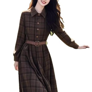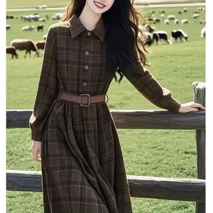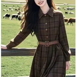 今年流行美拉德千金长裙质轻奢高级感小香风格纹连衣裙女2025秋季