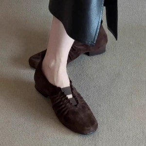 羊皮版~复古方头褶皱低跟乐福鞋2025新款小众时尚百搭浅口单鞋女