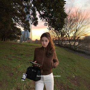 板栗可可Bankelili9.22/20点'乖嗲小奶卷'针织拼接毛毛拉链外套女