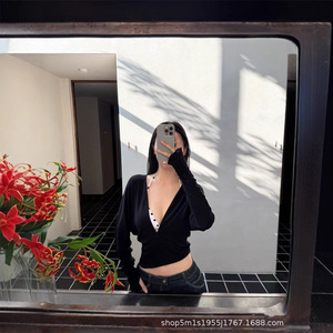 RARELY 设计感V领隐拉蝙蝠袖针织上衣女
