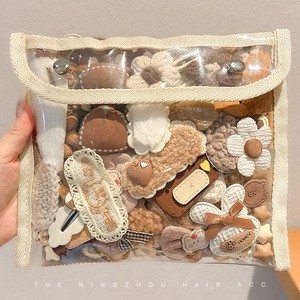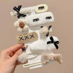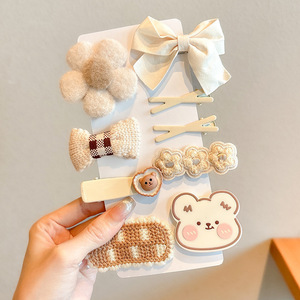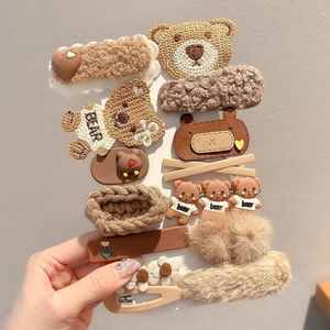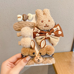 女孩秋冬碎发发夹毛绒奶咖色可爱发卡2025新款不伤发卡通bb夹发饰