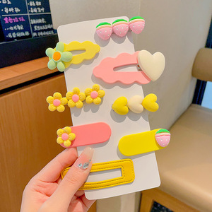 3#黄绿色儿童发夹(8件套) -软胶(约7cm)