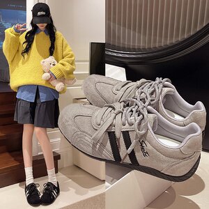 复古百搭软底单鞋女2025系带德训鞋女时尚拼色休闲鞋运动鞋阿甘鞋