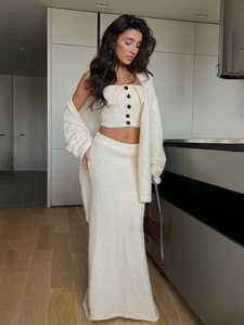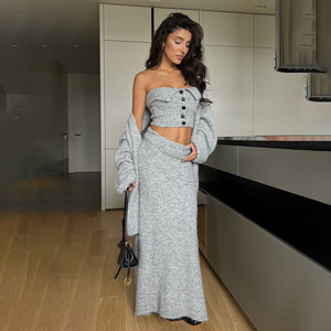跨境软糯毛衣三件套抹胸上衣搭配长裙与开衫温柔时髦慵懒氛围感女