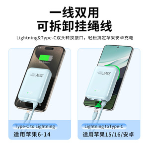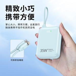2W毫安超大容量自带线充电宝迷你超级快充数据线超薄容量移动电源
