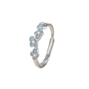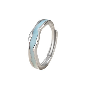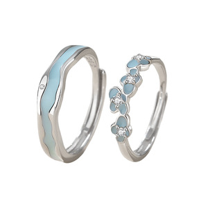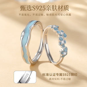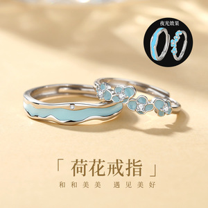 蒂奇亚原创S925纯银荷花情侣对戒森系小众设计花朵珐琅夜光开口戒
