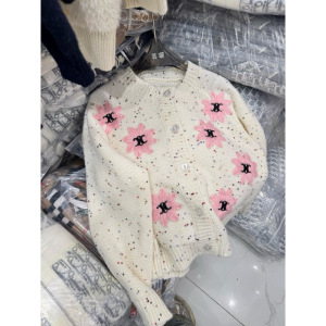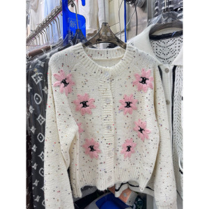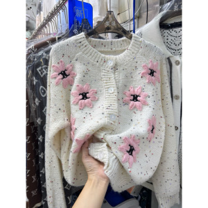 复古菱格绣花圆领针织开衫女秋冬新款宽松慵懒风软糯毛衣外套女潮