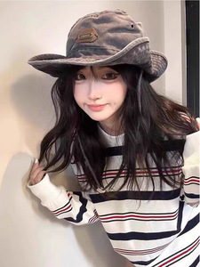 条纹长袖T恤女 美式复古高街慵懒风春秋新款宽松休闲学生百搭上衣