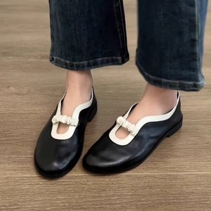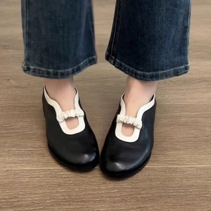 现货版~法式蝴蝶结圆头芭蕾舞鞋女2025冬新款百搭一脚蹬浅口单鞋