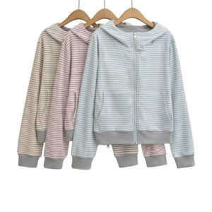 美式复古韩系连帽卫衣外套女秋季慵懒风宽松条纹撞色开衫百搭上衣
