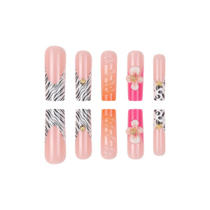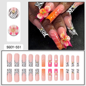 欧美热销时尚波纹甲片水管型豹纹热售长跨境花朵白边立体3D甲批发