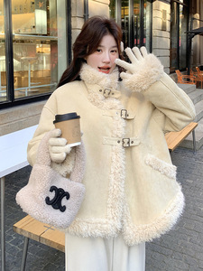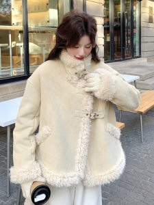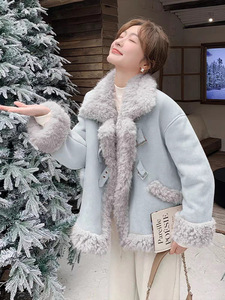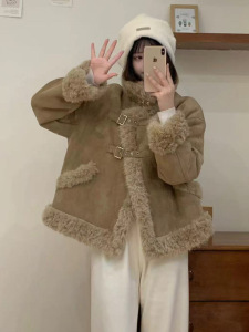 高级感皮毛一体外套女2025冬季韩系减龄机车服加厚仿糕毛棉衣短款