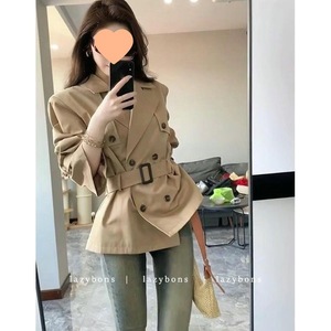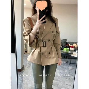风衣外套秋季新款气质卡其色双排英伦小个子短款收腰大衣氨纶