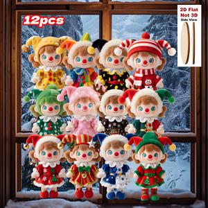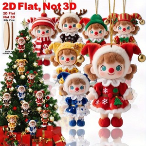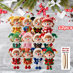 新品12件彩色圣诞节毛绒娃娃挂饰木制装饰圣诞树节日悬挂装饰挂件