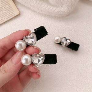 小号珍珠侧边鸭嘴夹爱心发卡高级感前额碎发夹子水钻迷你刘海夹