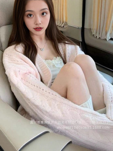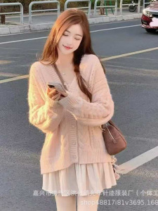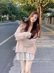 KANING粉色针织开衫毛衣韩系chic穿搭宽松甜美减龄慵懒风外套上衣