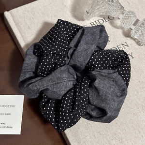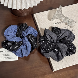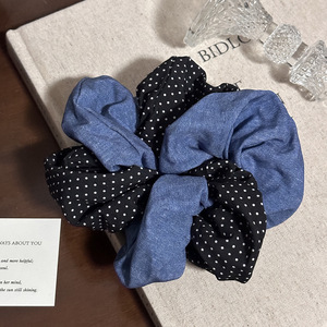 森系复古布艺蓝色波点大肠发圈双层高级感丸子头发绳韩国少女头绳