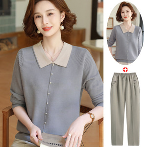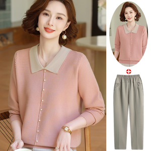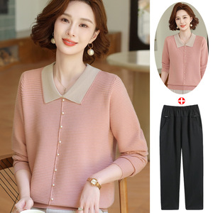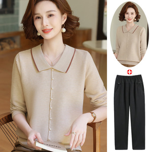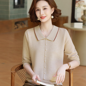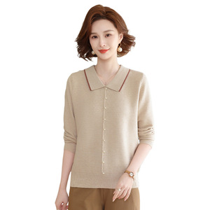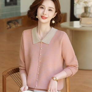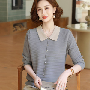 年轻妈妈秋装时尚针织上衣洋气质翻领打底小衫2025新款中老年女装