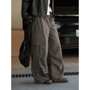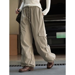 秋冬新款美式街头工装风松紧抽绳休闲裤口袋褶量微卷边长裤女