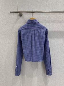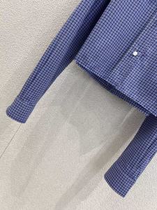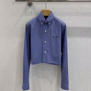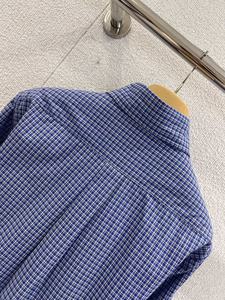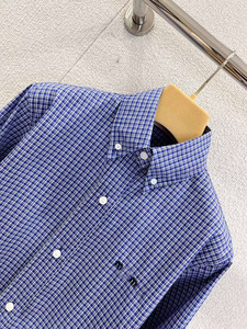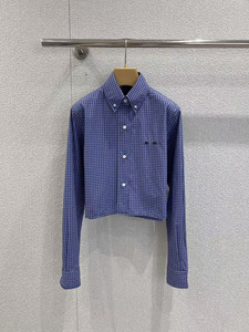 南油M家女装25秋季新款字母刺绣格子翻领纽扣百搭清新长袖女衬衫