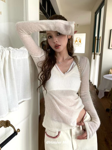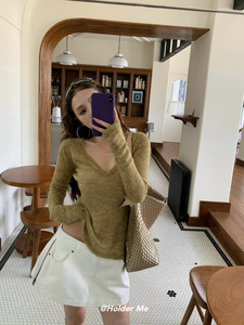 HOLDER ME正版 桔色v领马海毛针织衫秋季修身内搭长袖低领打底衫