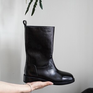 韩版手工烟筒靴女2025秋冬新款真皮靴子中筒靴覆古直筒骑行靴单靴