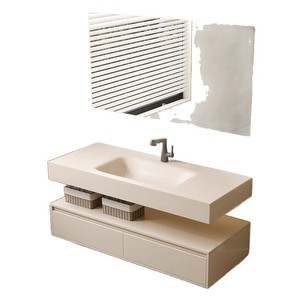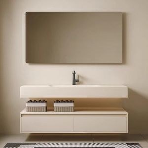 米黄色/白色/鱼肚白岩板热弯盆+智能镜柜-