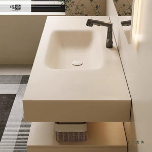 米黄色/白色/鱼肚白岩板无缝盆+智能镜片-