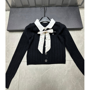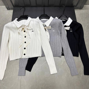 蝴蝶结丝巾麻花长袖针织开衫毛衣女秋季新款洋气减龄气质显瘦上衣