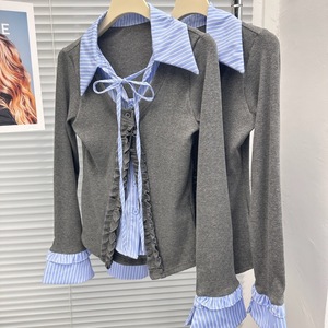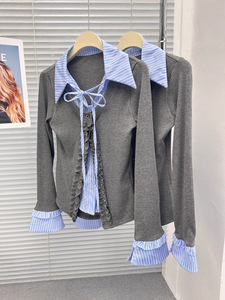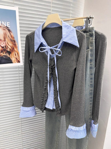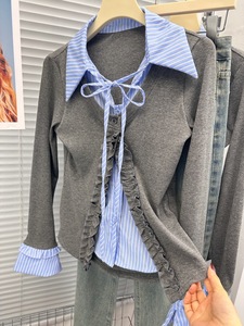 【6150人收藏】木耳边格子拼接系带长袖衬衫女2025春季新款假两件