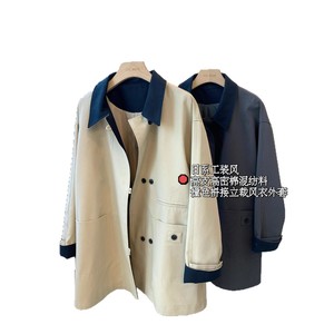 客供面料 立裁挺括有筋骨撞色翻领落肩袖日系工装休闲风衣603017