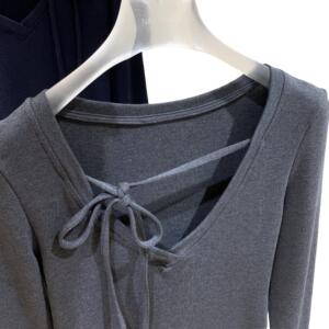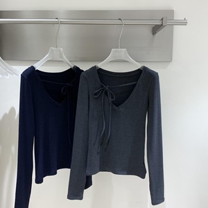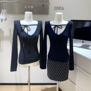 纯欲风绑带蝴蝶结V领软糯修身打底衫上衣气质