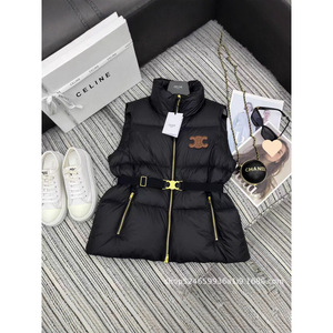 25ss新款C立领羽绒服马甲 凯旋门皮牌点缀 轻盈饱满