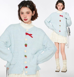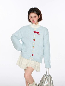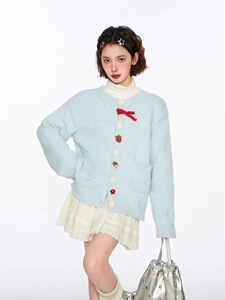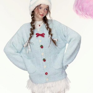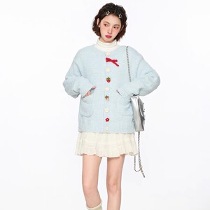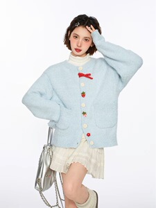 美式感奶蓝色水貂绒猫咪蝴蝶结毛衣女秋冬款宽松软糯