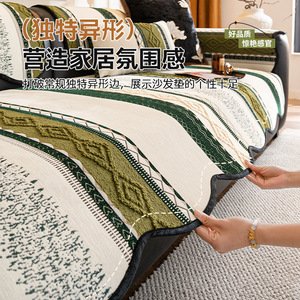 四季通用异形沙发垫2025新款防滑皮沙发坐垫直排一片式不规则盖布