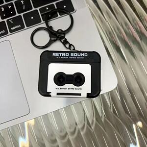 磁带黑粉色录音机钥匙扣迷你复古收音机会唱歌的音乐盒挂件可录音