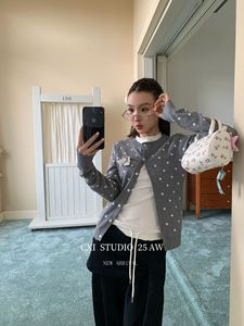 CXI 波点针织开衫女秋季新款叠穿设计感修身百搭长袖小个子外套