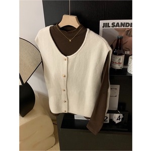 2025复古小金扣叠穿针织坎肩女秋季韩系外套开衫软糯宽松毛衣马甲