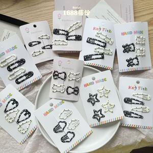 黑白色波点五角星儿童发夹甜美少女刘海夹侧边夹宝宝碎发BB夹发卡