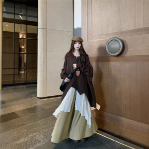川西新疆云南丽江旅游穿搭女装秋冬新款阔腿裤裙毛衣废土风套装潮