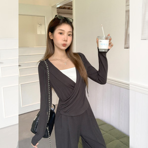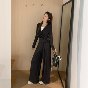 2025实拍早秋休闲运动两件套女慵懒显瘦长袖t恤女阔腿裤连帽套装