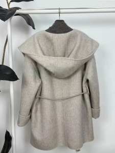 M**檬女装2025冬季新款浴袍连帽羊毛双面呢大衣外套女5GA170281