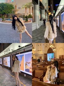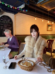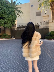 网红同款中古狐晕染狐狸毛皮草马甲女式外套2025冬新款横条